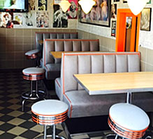 Welkom bij Kiekeboe Snacks - Dé fifties rock 'n roll diner ! Reeds meer dan 38 jaar serveren wij frietjes en hamburgers in een unieke snackbar. Dit in de stijl van de fifties met de gezelligheid van vroeger. U kunt bij ons genieten van goede muziek, hamburgers, lekkere frietjes, gezonde broodjes en maaltijdsalades, kom eens binnen en overtuig uzelf.